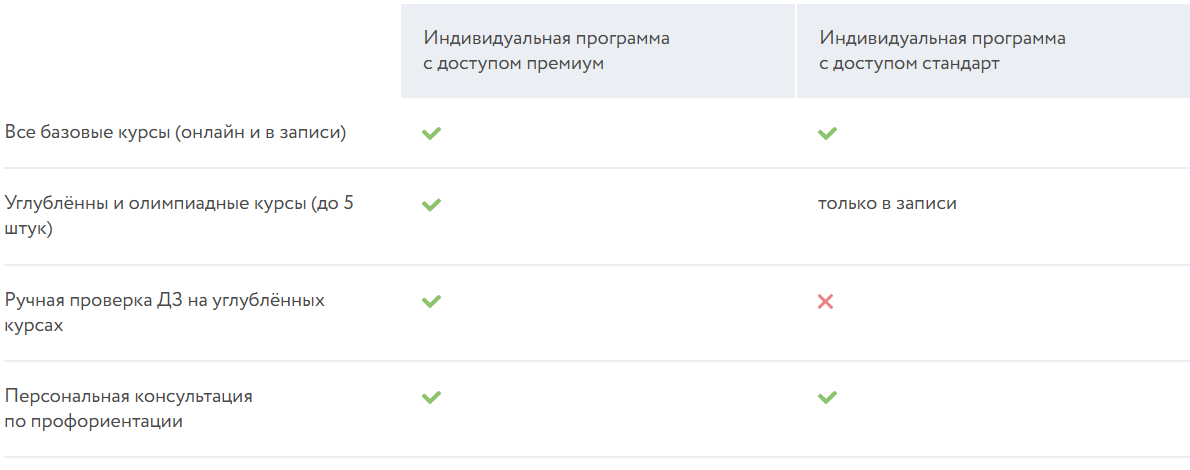 Помимо индивидуальных программ есть базовая: без углублённых курсов и ручной проверки задний по ним, а также без профориентационного консультирования.