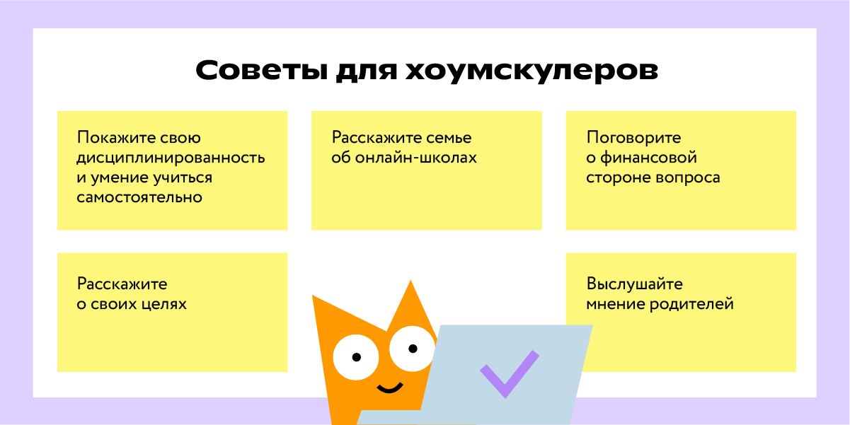 2. Расскажите об онлайн-школах. Покажите родителям школы, которые помогают хоумскулерам, например Домашнюю школу Фоксфорда. В ней ведут занятия учителя из МГУ, МФТИ и НИУ ВШЭ, а у каждого ребёнка есть наставник, который еженедельно отчитывается перед родителями.