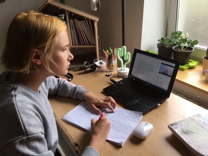 Я просыпалась в 9-10 утра. Поскольку в Челябинске, где я живу, двухчасовая разница с московским временем, сначала делаю домашку, а потом смотрю онлайн-занятия.