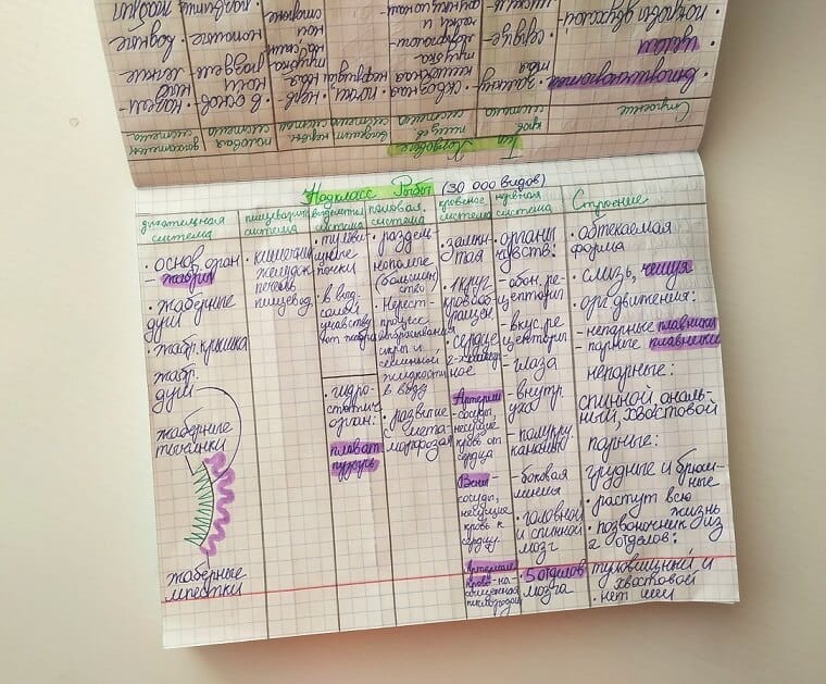 У нас в 7 классе идёт зоология. Чтобы не путать характеристики различных классов, удобно составлять по ним таблицы.