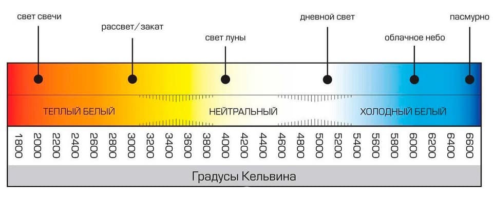 Помимо яркости света важен его оттенок. Для светодиодных ламп разработана специальная шкала температуры света:
