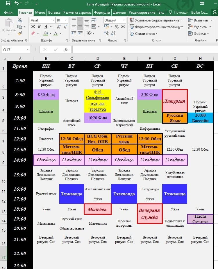 Расписание можно сделать в любой программе для тайм-менеджмента. Но мне удобнее всего пользоваться Excel.